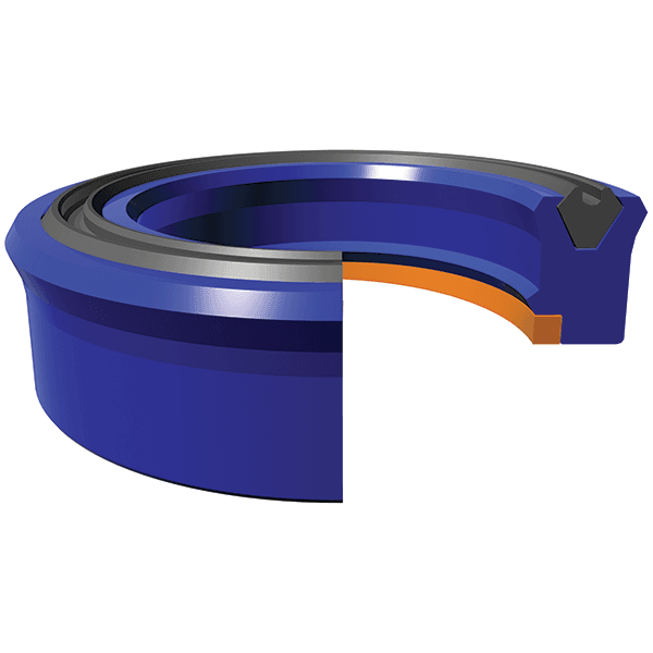 This high-pressure rod seal incorporates both an acetal anti-extrusion ring for pressure protection as well as a unique profiled energizer to ensure lip loading in all conditions. Twin-lip design insures dry rod sealing and added stability in the housing.